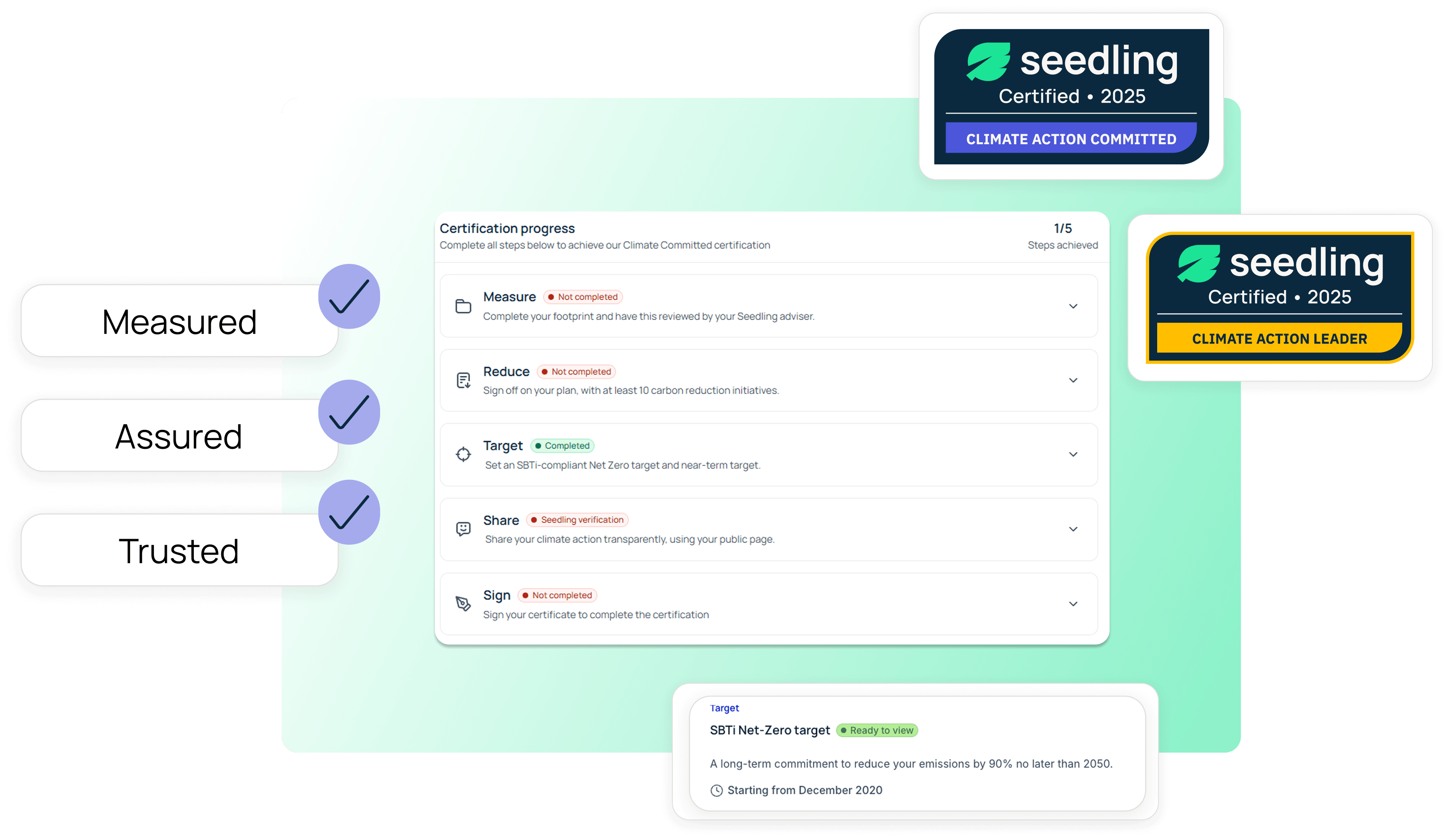 Seedling certification is built on established best practice, including GHG-Protocol-aligned, expert-reviewed footprint data, science-based targets, and transparent disclosure.