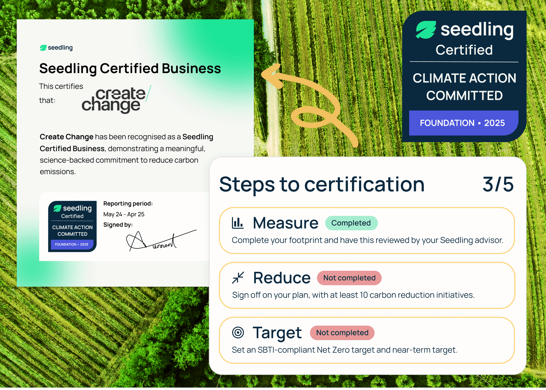 - Expert verification: Seedling’s team reviews every step to ensure compliance before awarding certification.