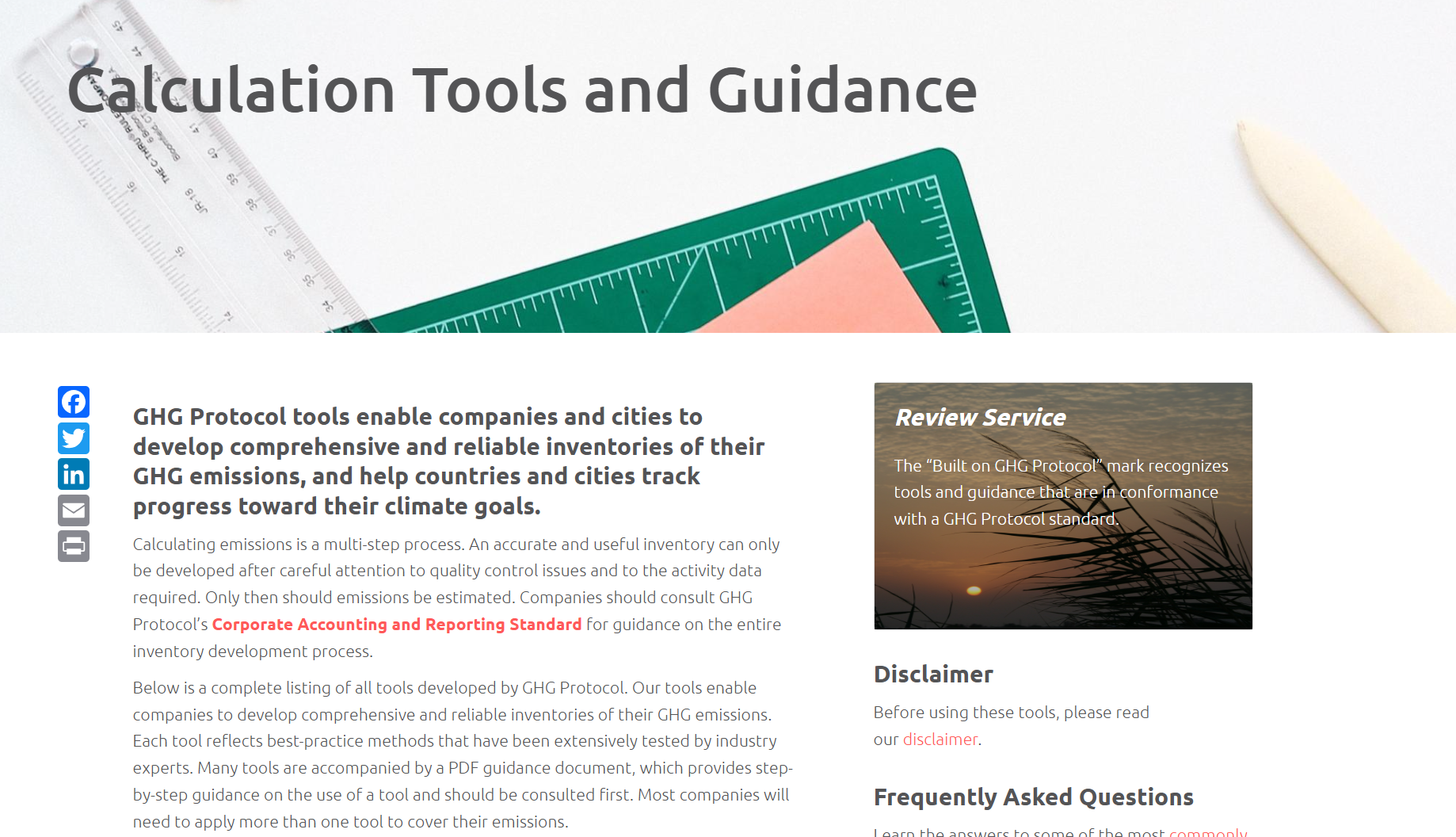 The GHG Protocol provides calculation tools and guidance that can be used as a comprehensive toolkit, especially if you are comfortable with spreadsheets.