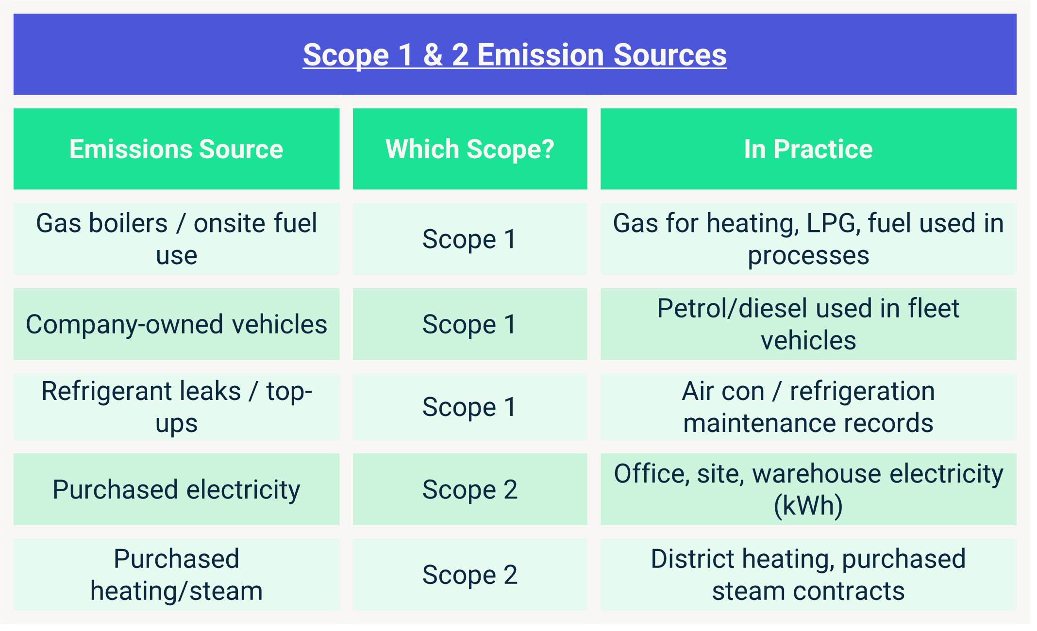 • Forgetting refrigerants (often missed, but explicitly part of Scope 1 when equipment leaks refrigerants).